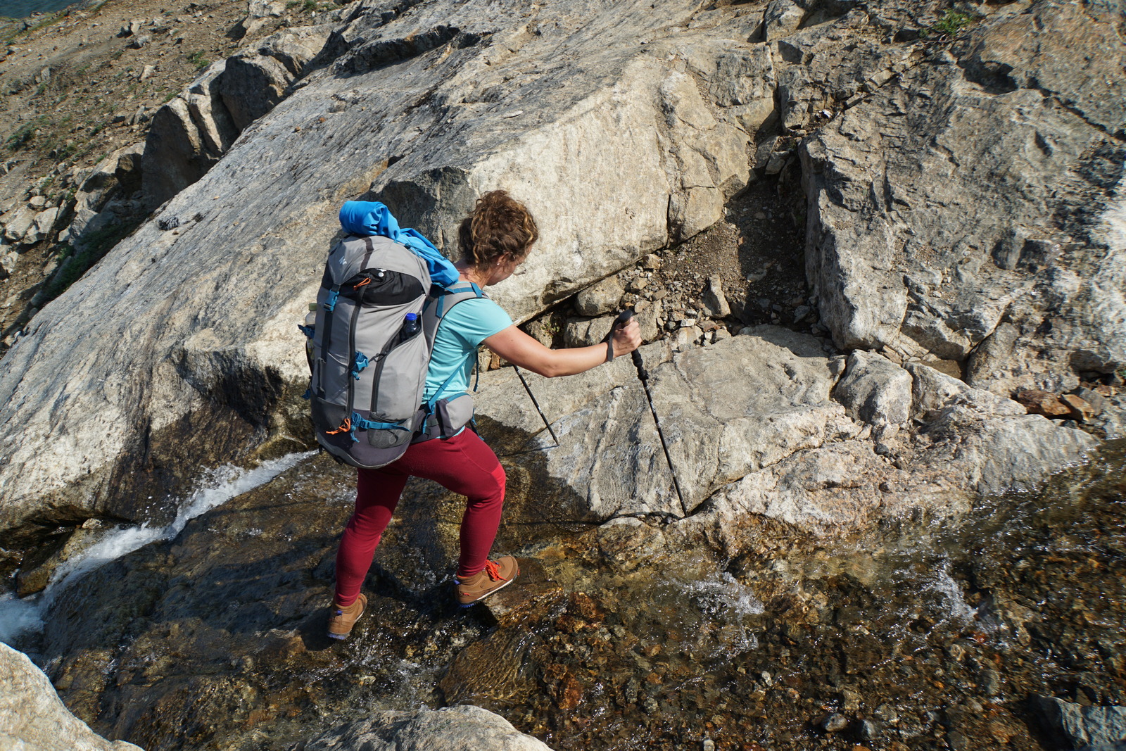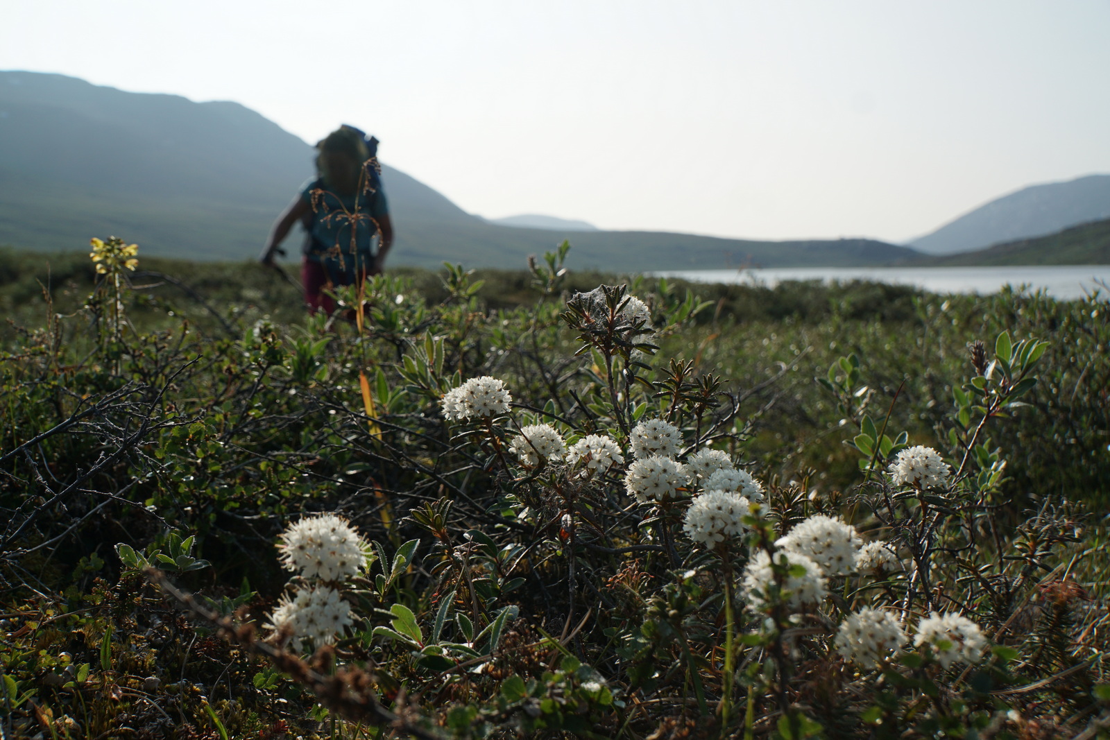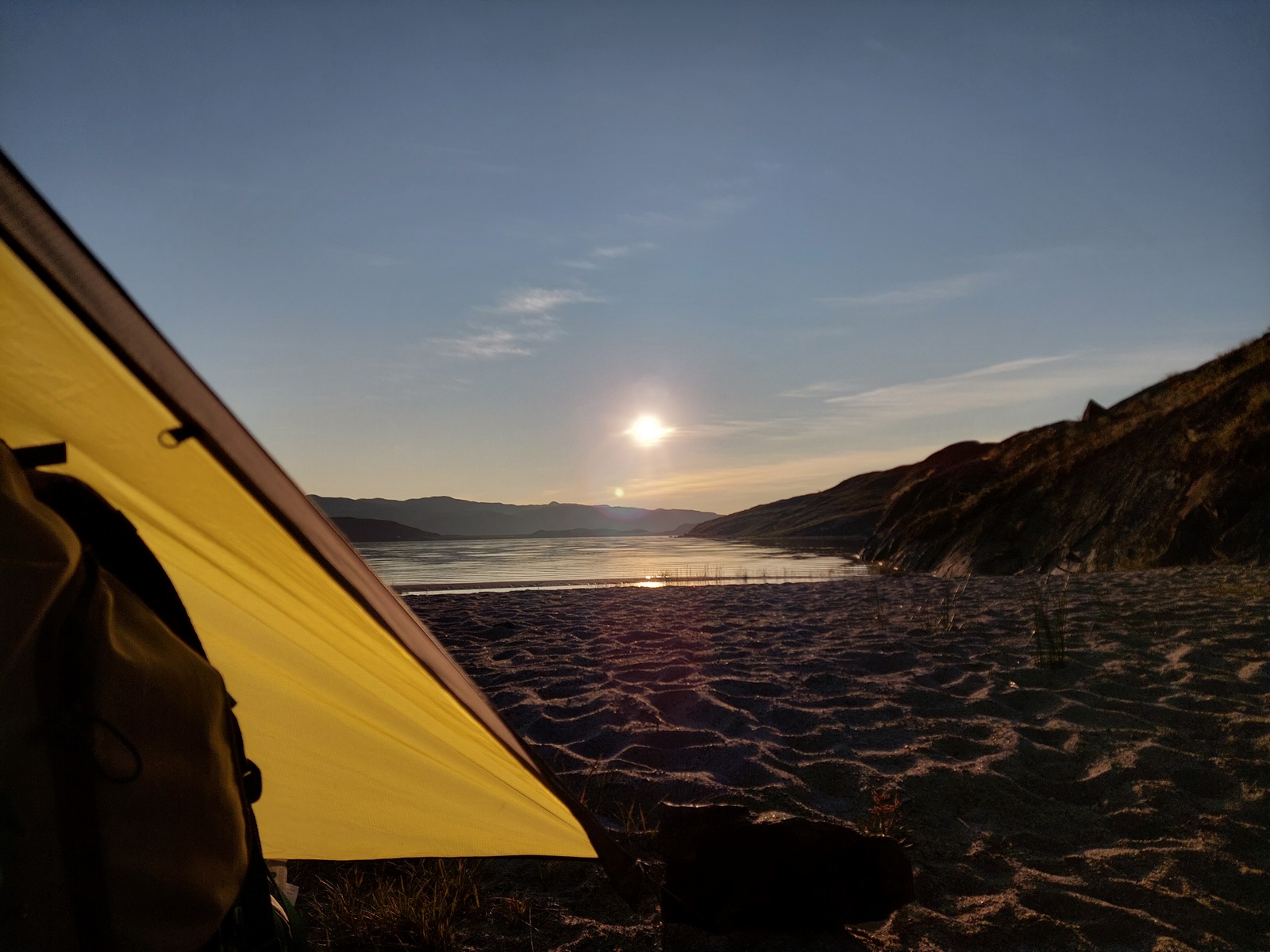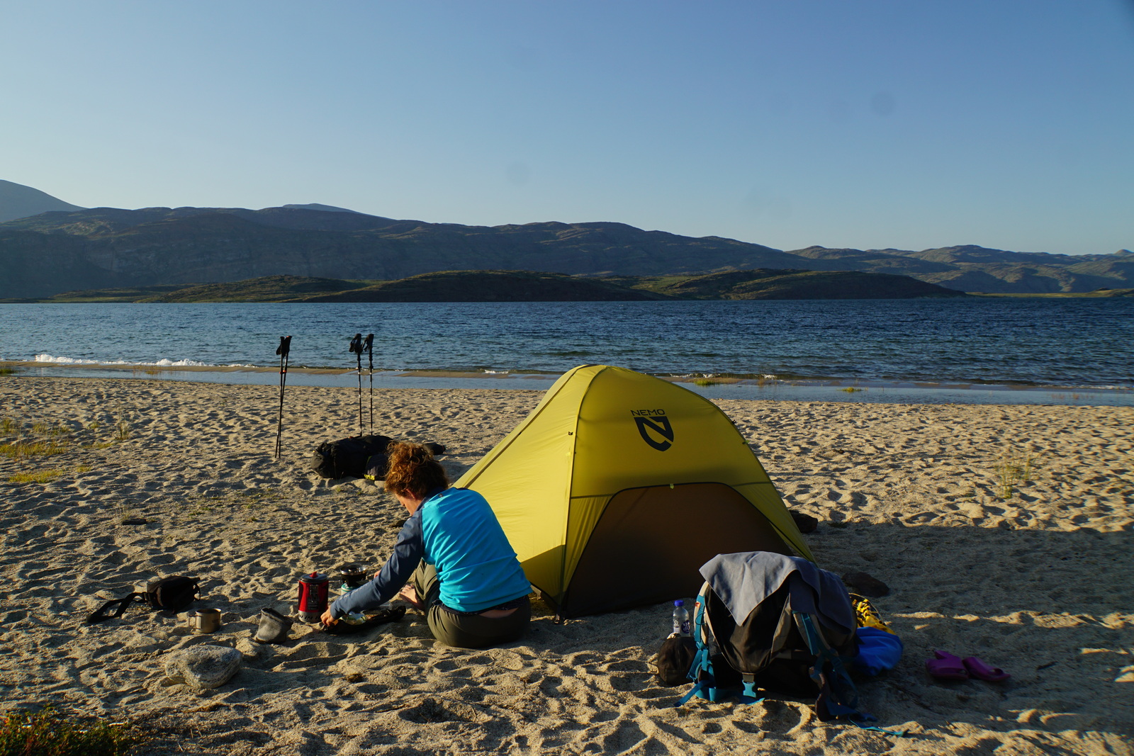 Pogodę za to mieliśmy wyśmienitą – sześć słonecznych i ciepłych dni z temperaturą około piętnastu stopni, a odczuwalną na pewno powyżej dwudziestu. Większość czasu na szlaku spędziliśmy w krótkich rękawkach i regularnie korzystaliśmy z kąpieli w jeziorach oraz strumieniach. Nie byłoby tak pięknie, gdyby pogoda była deszczowa – tundra szybko zamieniłaby się w jedno wielkie bajoro, a przyjemność z wycieczki zanikłaby podczas walki z wodą i błotem. U nas tylko jeden dzień był pochmurny, ale poza krótką mżawką deszczu nie było. Nocą temperatura spadała może do dziesięciu stopni.