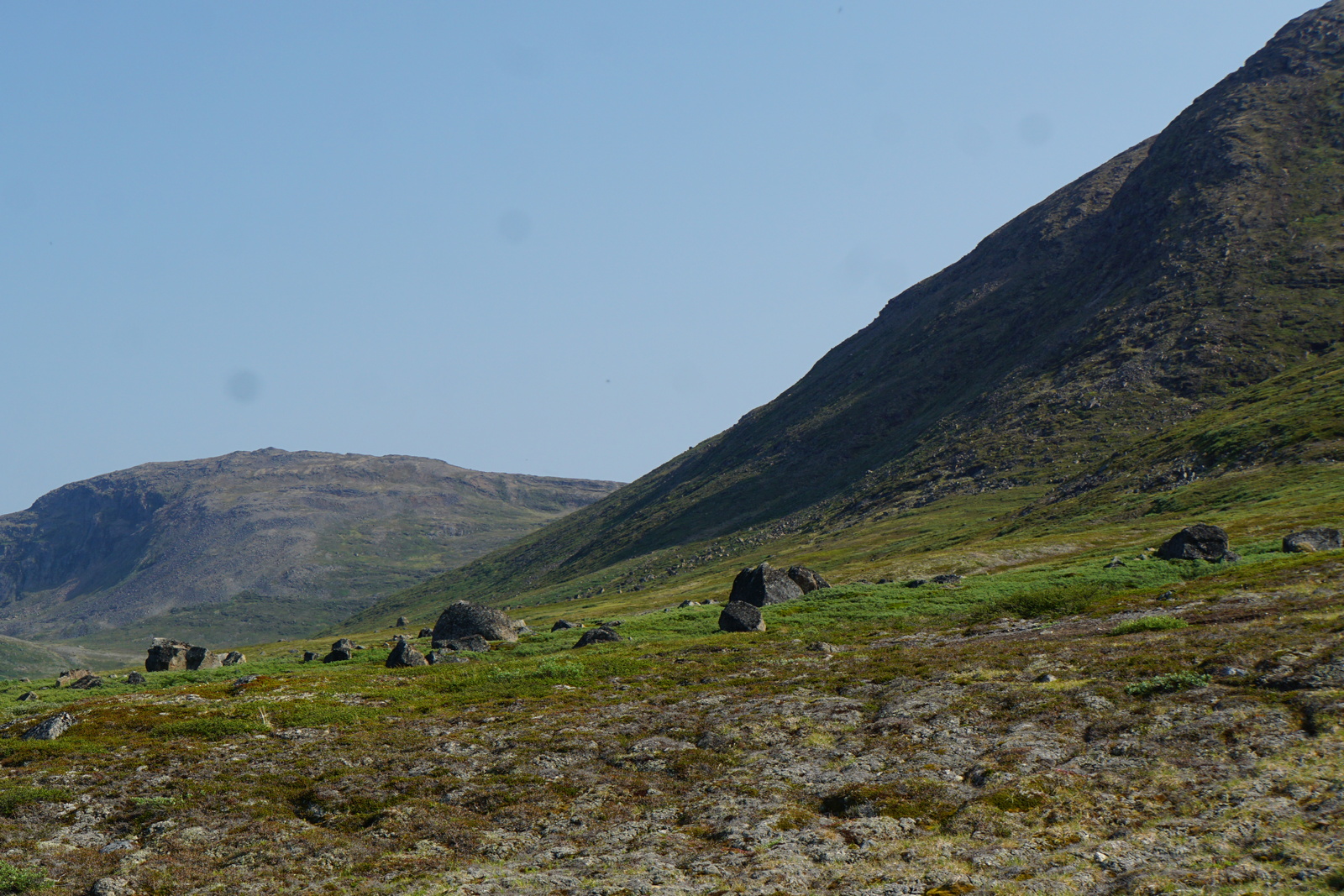Lżejszy niż dawniej plecak sprawił, że wędrówka nie była katorgą, a uwagę mogłem skupić na wypatrywaniu piżmowołów. Jednak, ponieważ woły wolały paść się w innych częściach tych rozległych terenów, musiałem zadowolić się wyśmienitym liofilizatem „Beef Stroganoff” polskiej firmy LyoFood. Ogólnie widzieliśmy dość mało zwierząt (przynajmniej w porównaniu z podobną wędrówką w górach Brooksa na Alasce). Tak więc opcje są dwie: albo na Grenlandii jest ich mniej, albo akurat nie mieliśmy do nich szczęścia.