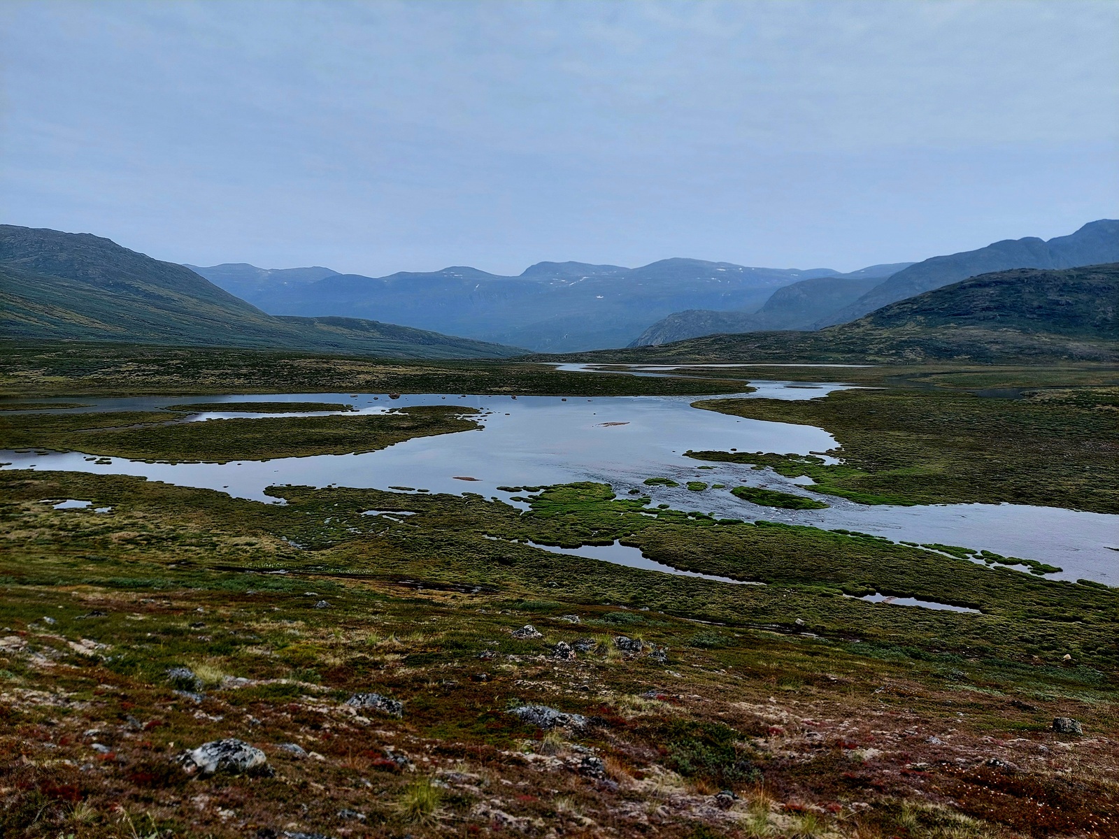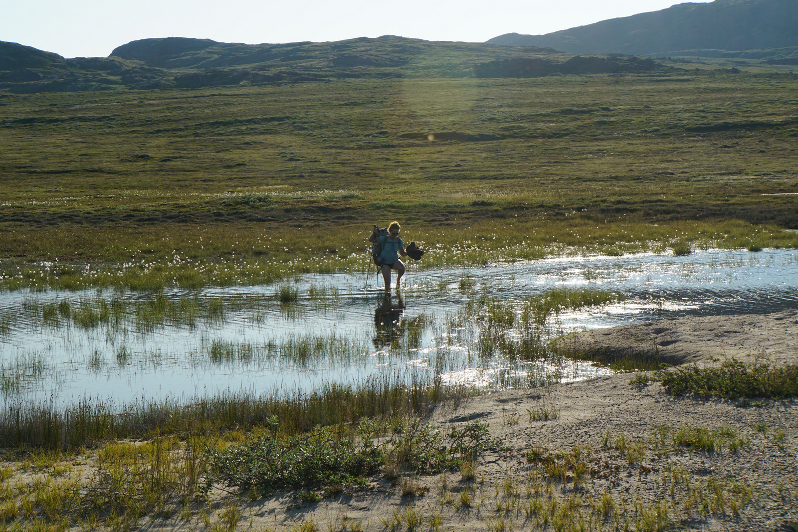 Grenlandzka tundra była dla nas całkiem łaskawa, jeśli chodzi o stopień zabagnienia. Spodziewałem się gorszych warunków, szczególnie po wysłuchaniu opowieści ludzi spotkanych na początku naszej przygody. Miały być pola ryżowe, woda po pas, bagna po kolana… Tymczasem udawało mi się iść ze względnie suchymi stopami (oczywiście stosując rotacyjny system suszenia skarpet).