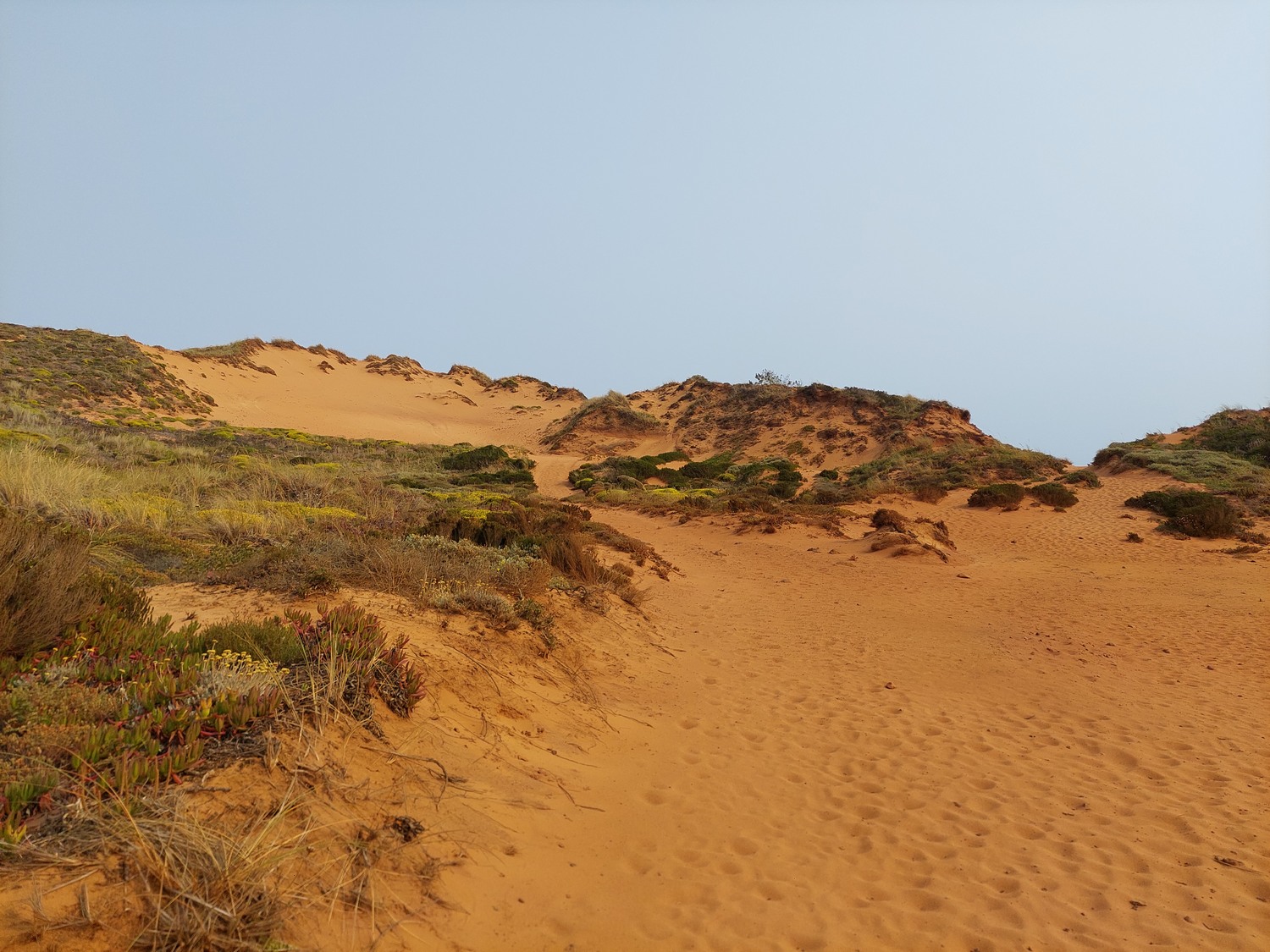 Następnego dnia rozpoczęliśmy właściwą wędrówkę – piach, wydmy, słońce, które zrobiło z nas pieczone raki. W połowie dnia – zupka i kawa w lasku na palniku. Wieczorem dotarliśmy do Villa Nova de Milfontes, a po przejściu mostu znaleźliśmy dziki nocleg w krzakach.