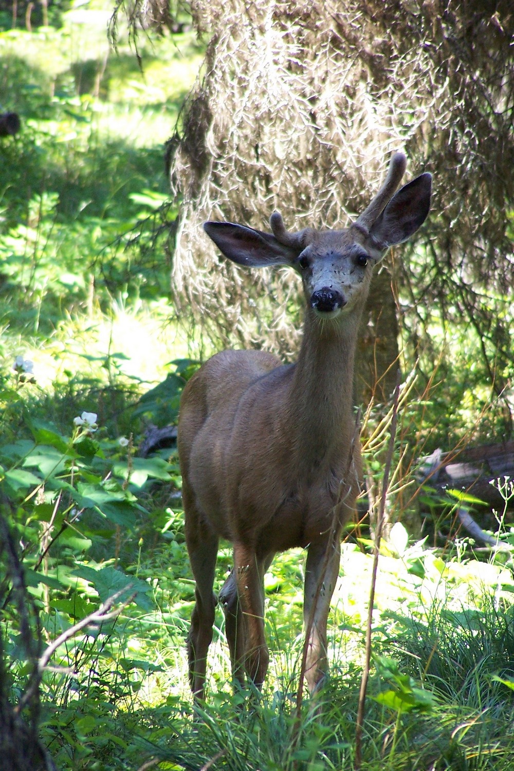 Waterton jest podobno pełen niedźwiedzi, lecz nie widzieliśmy dotychczas, ani podczas dzisiejszej wędrówki, żadnego misia. Wiemy jednak, że gdzieś tu są, gdyż wskazują na to liczne tropy i odchody. Pełno tu za tu wiewiórek i chipmunk'ów (po naszemu pręgowiec). Widzieliśmy nawet młodego jelonka, a dokładnie mulaka czarnoogonowego - typowego dla zachodniej części Ameryki Płn. .