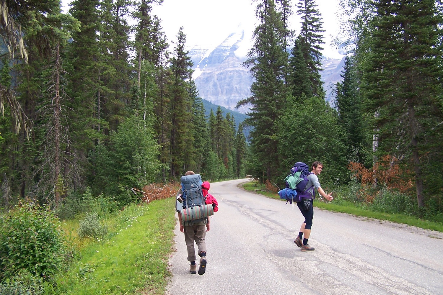 Przede mną kilkukilometrowy lodowiec i góry, wysoko unoszące się nad całym tym polem lodu pod nimi. Już czwarty dzień jestem na szlaku w kanadyjskich Górach Skalistych i wcale nie mam dosyć tych widoków, które mi oferują. Szlak, który pokonuję wraz z Jokinem i Matyasem, jest nazywany 'Robson Pass' i znajduje się w 'Mt. Robson Provincial Park' graniczącym z parkiem narodowym Jasper. Szlak rozpoczyna się około siedemdziesięciu kilometrów od Jasper, na drodze nr 16 łączącej Edmonton z Prince Rupert. Z tego też punktu rozpoczęliśmy osiemnastego lipca naszą kilkudniową wędrówkę. Poranny stop z Jasper i byliśmy w górach.