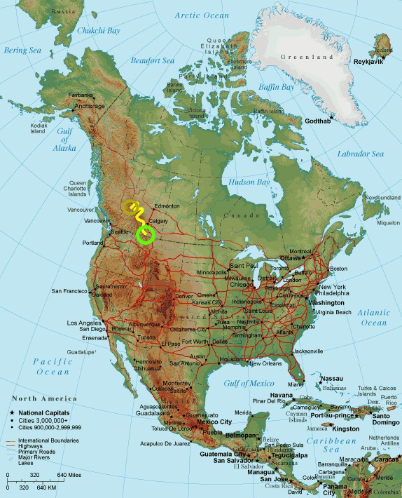 Czas wyruszyć na północ. Kilkoma stopami wydostaję się z rejonu Waterton. Jednym z moich kierowców jest James, kiedyś właściciel burdelu, teraz, kiedy młode lata się skończyły, szef firmy wykańczającej meble i kominki. James zaprasza mnie na obiad w Longview (polecam - ładna obsługa i smacznie) oraz zostawia swój telefon w razie gdybym chciał popracować kilka dni w drodze powrotnej.