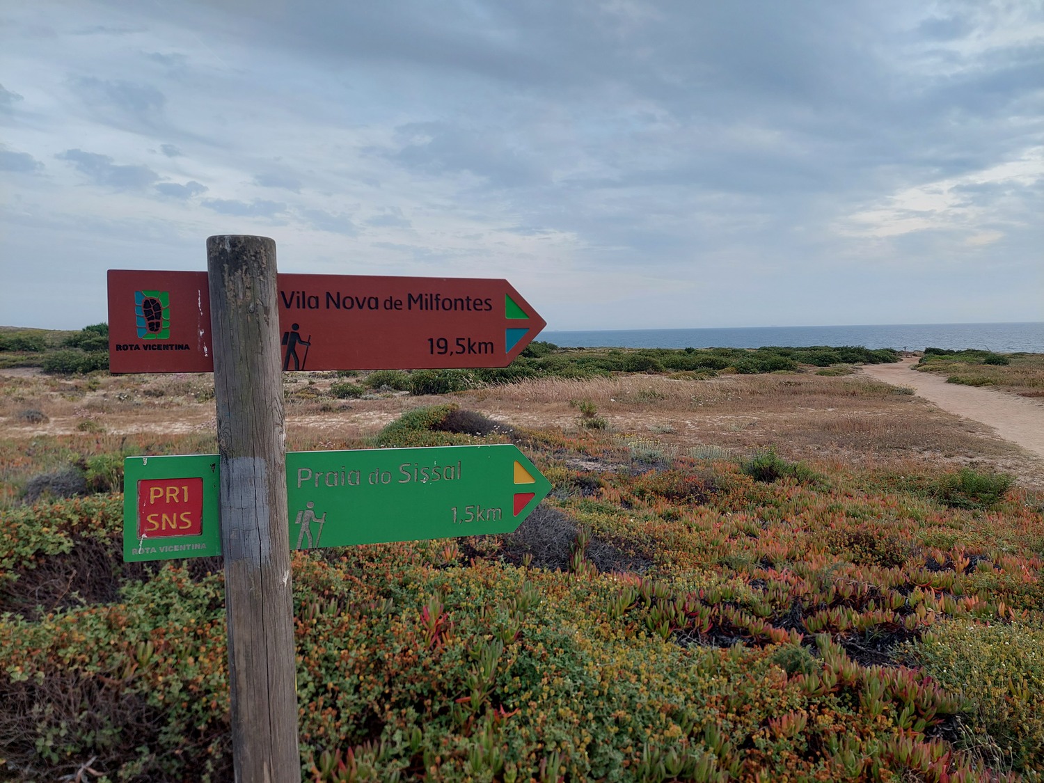 Następnego dnia rozpoczęliśmy właściwą wędrówkę – piach, wydmy, słońce, które zrobiło z nas pieczone raki. W połowie dnia – zupka i kawa w lasku na palniku. Wieczorem dotarliśmy do Villa Nova de Milfontes, a po przejściu mostu znaleźliśmy dziki nocleg w krzakach.