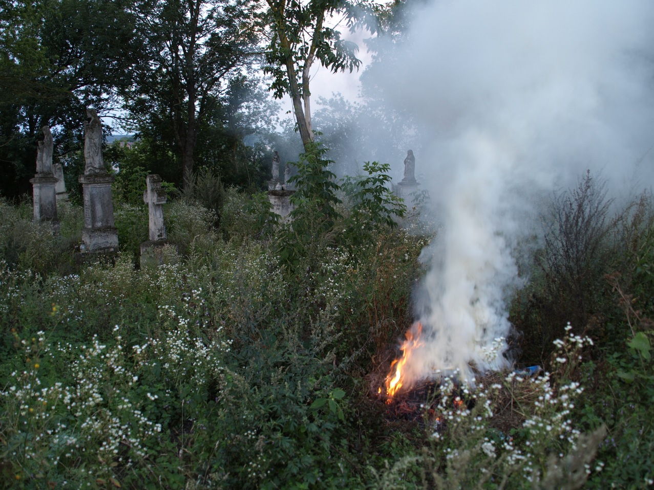 W Iwanczanach zostaliśmy rozpoznani przez miejscowych, którzy serdecznie zapraszali nas do siebie (woleliśmy jednak zostać pod namiotem przy cmentarzu, chociaż rozpętała się potem niezła burza). Dostaliśmy od nich worek pełen jedzenia – dużą butlę jeszcze ciepłego mleka krowiego, słoik bigosu, ogórków, ziemniaki, winogrona, a nawet paczki słodyczy dla dzieci. Chwile na cmentarzu były wzruszające dla mnie. Cmentarz prezentował się znacznie lepiej niż 3 lata wcześniej. Nie było już śmieci i wielkie krzaki zostały wycięte ponoć przez motocyklistów z Polski, którzy odwiedzili to miejsce jesienią rok temu. Cmentarz w Sieniawie był w jeszcze lepszym stanie. Groby pobielone, napisy odnowione czarną farbą. Zupełnie inne miejsce niż to, które zapamiętałam 3 lata temu. Wtedy bez użycia szczotki i papieru ściernego można było zapomnieć o przeczytaniu napisów, gdyż wszystkie groby pokryte były mchem i porostami.